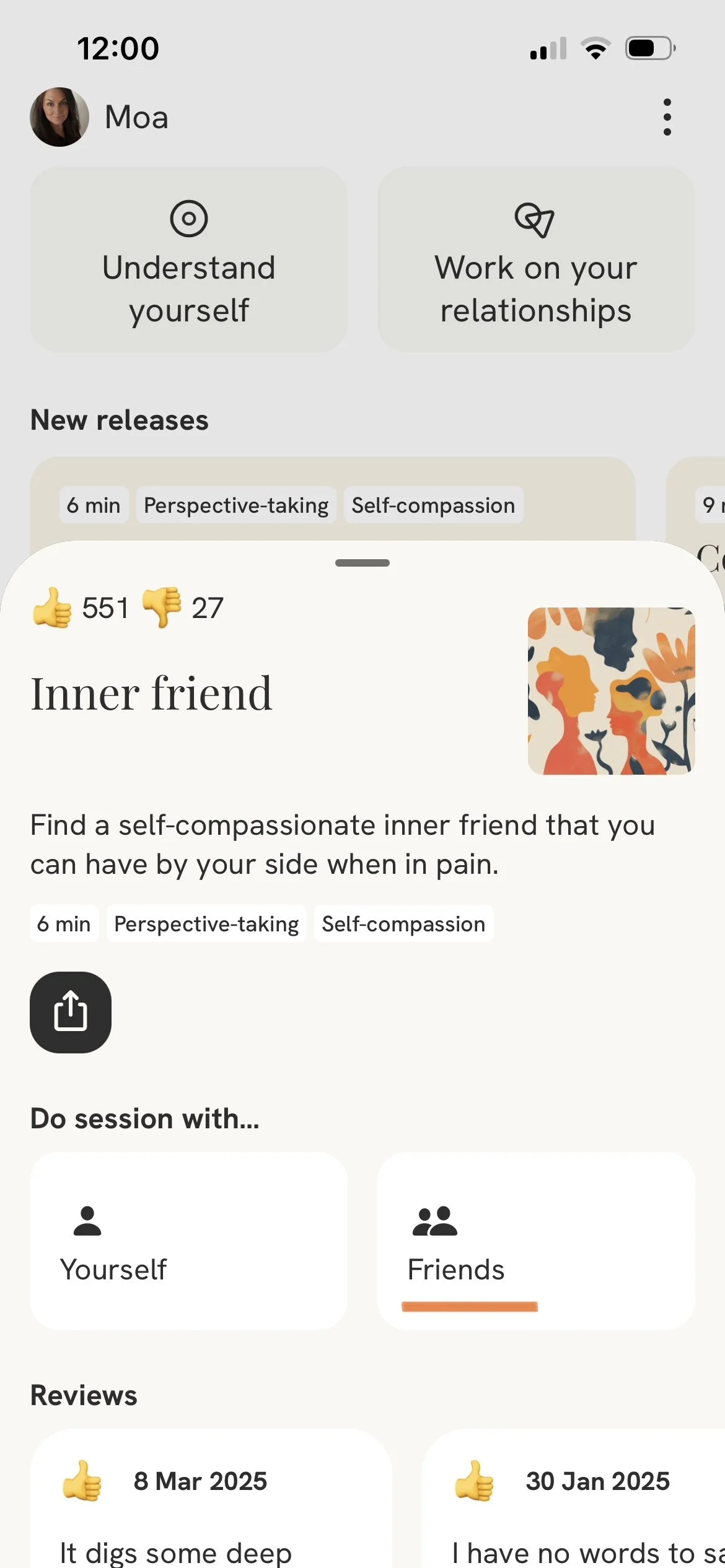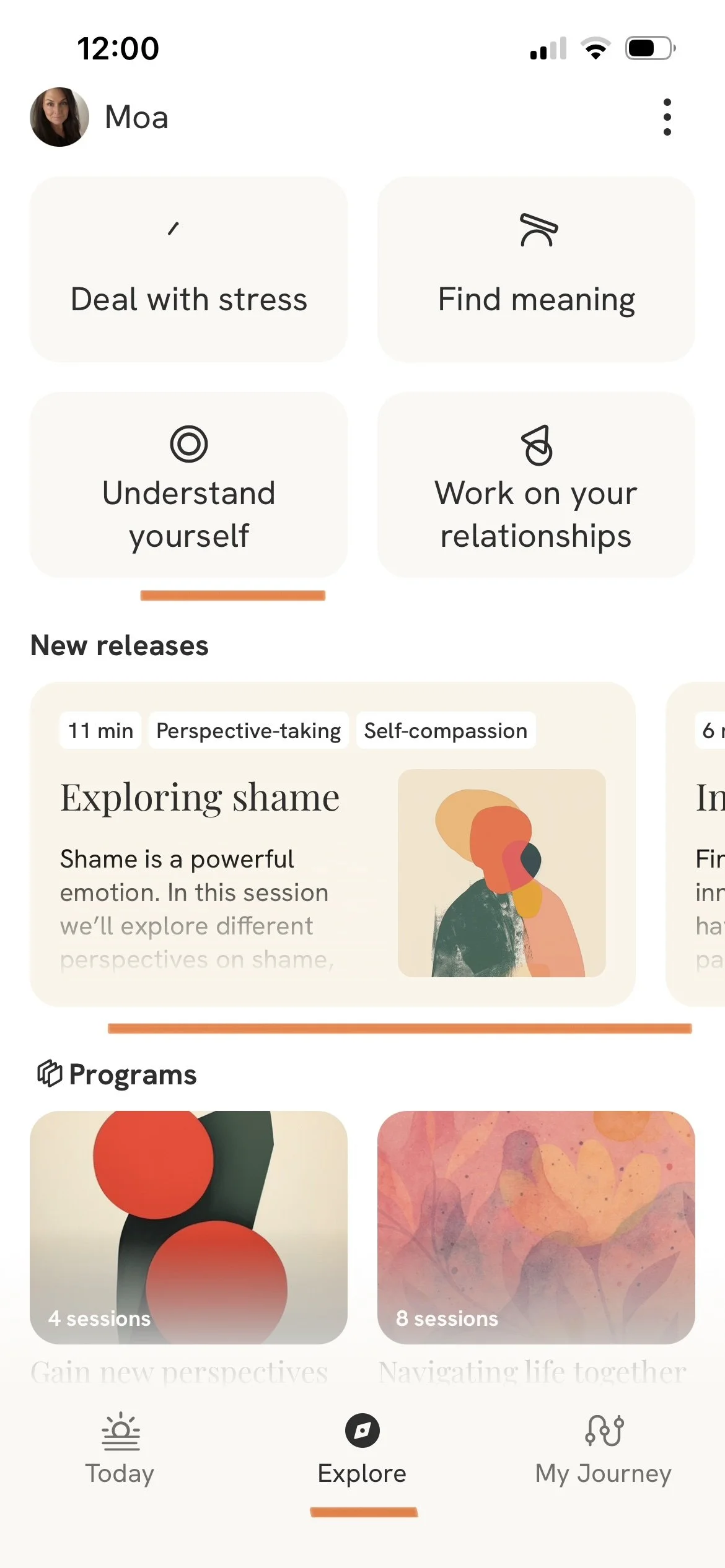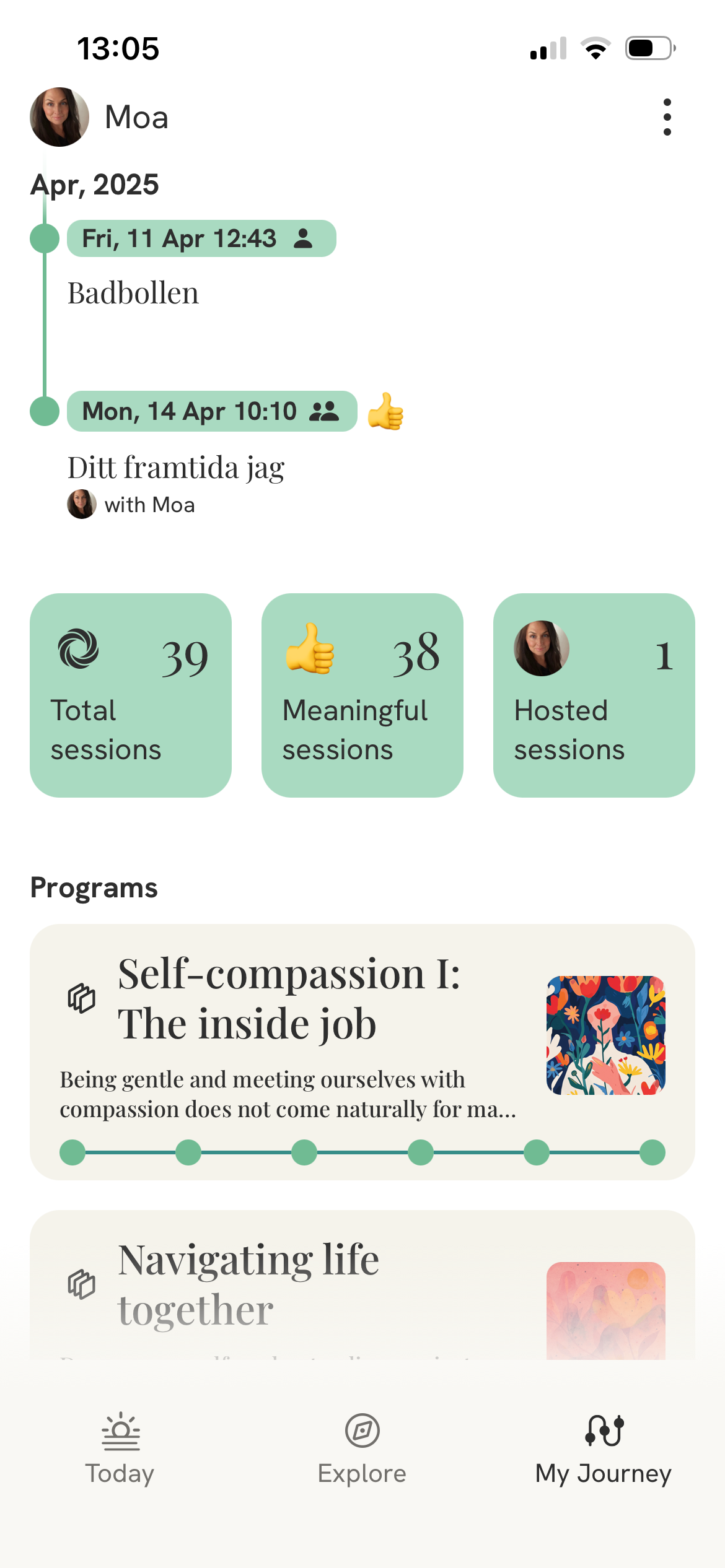 Live sessions that offer a space to reflect, share, and grow together. Backed by science, these peer-to-peer conversations strengthen emotional insight and make your journey more powerful, and more human.