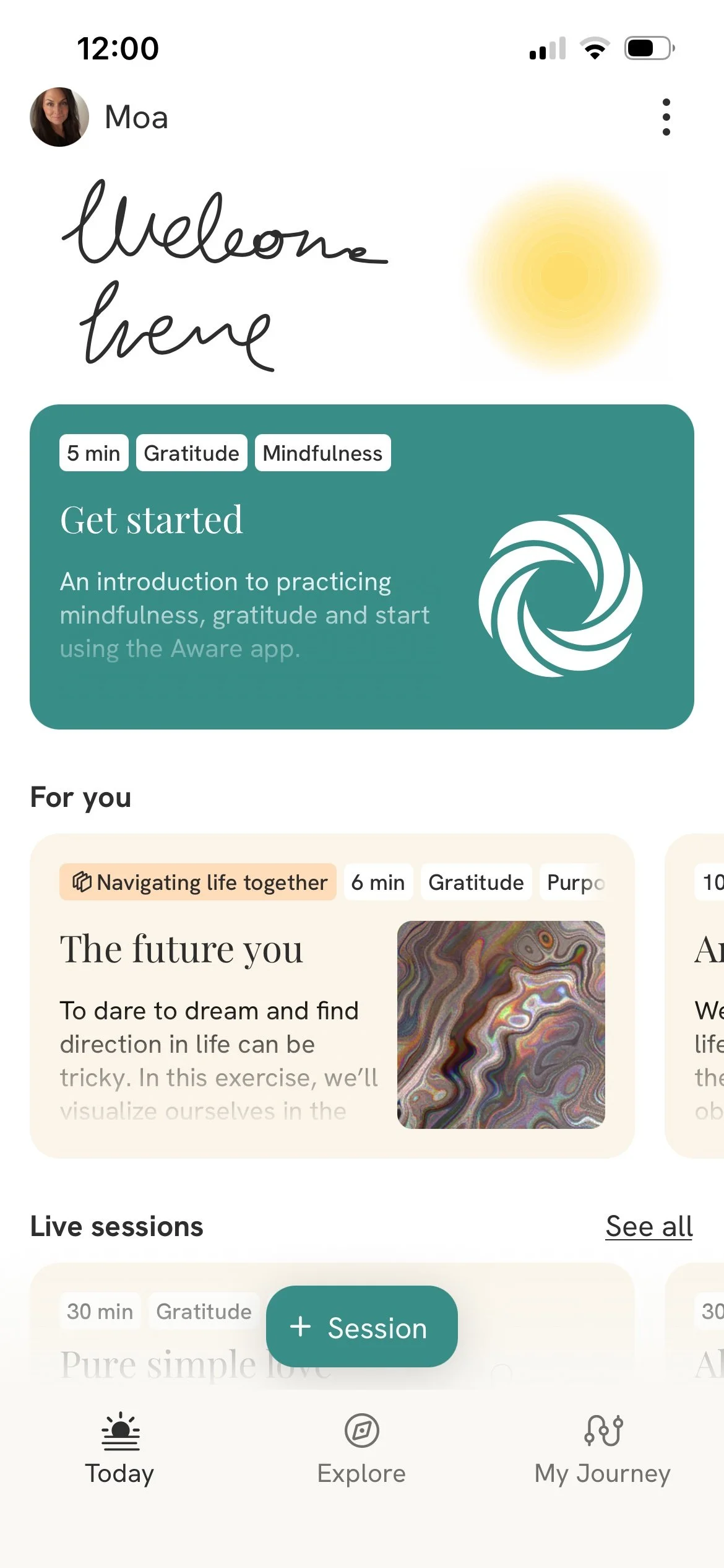 A core element of using Aware is participating in live sessions, scientifically proven to enhance the effectiveness of the exercises. Live sessions provide a unique opportunity to create meaningful human connection and collective learning through shared experiences and by relating to others’ feelings and perspectives.
